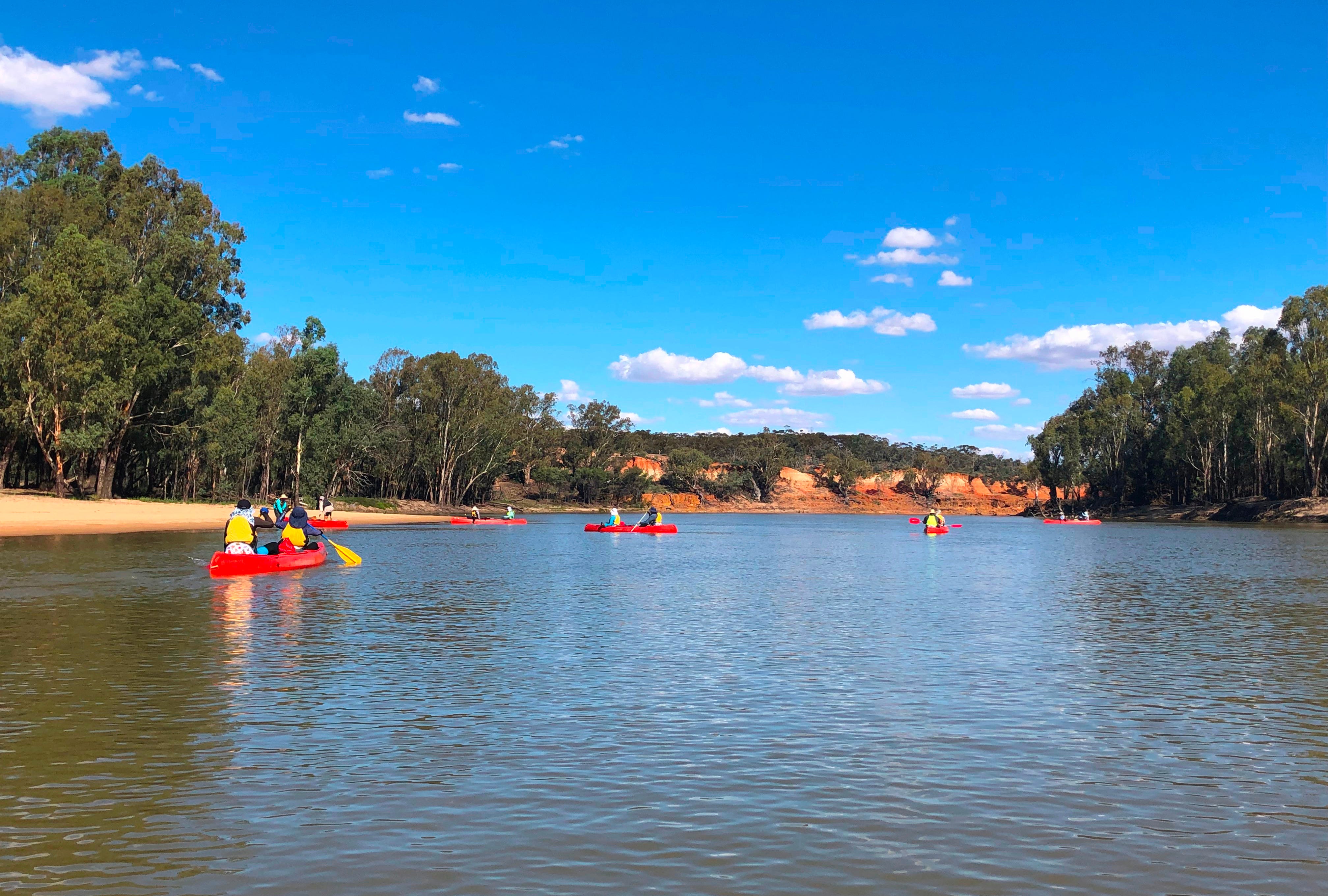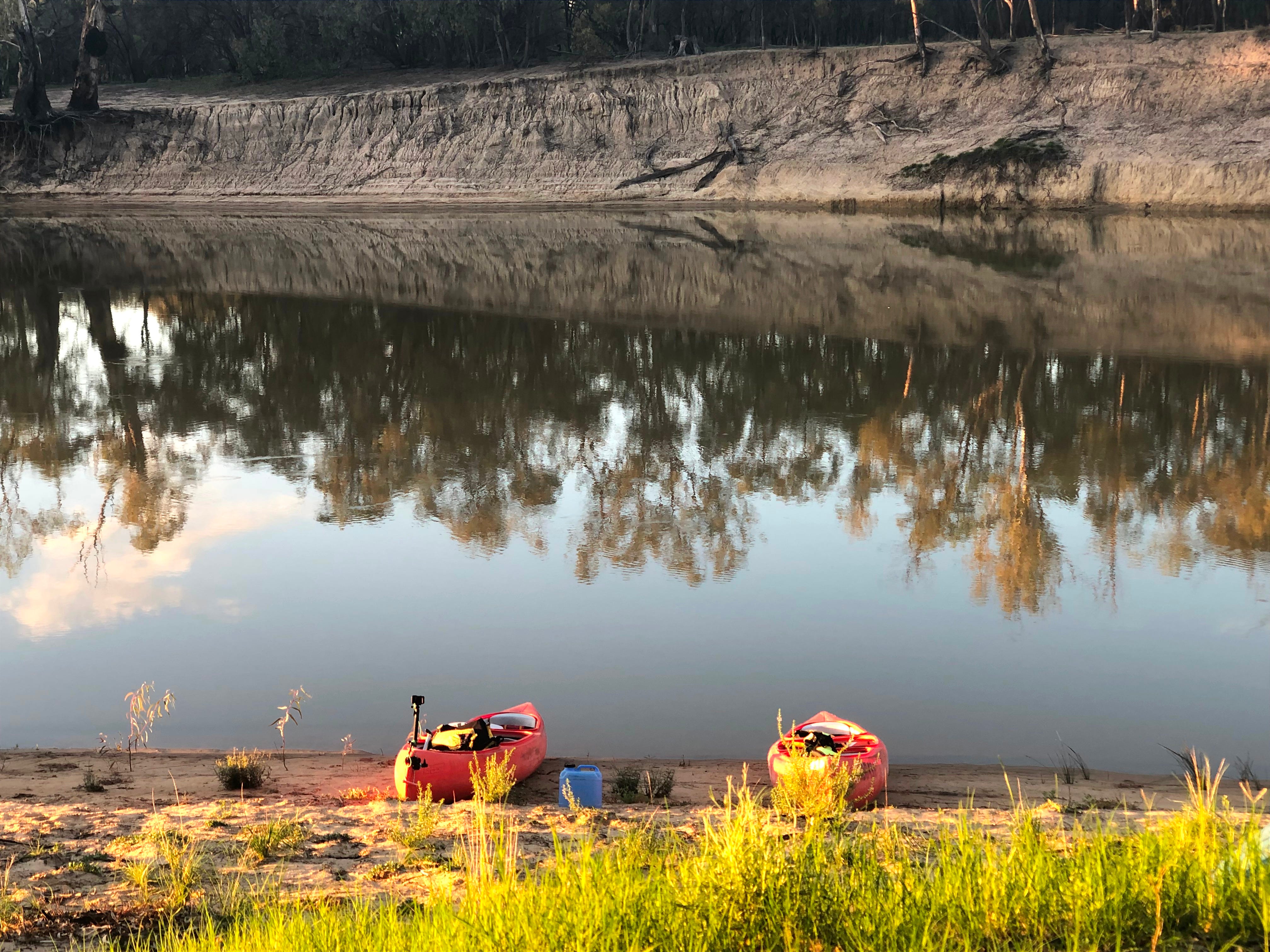 Along with the joys, come sorrows. Throughout our 88km paddle, we bear witness to the brutal erosion of River’s banks. Dead trees scatter the ground, vast complexes of exposed tree roots lace River’s edges. The water is silty, there is more carp than native fish in the river, but whatever swims here cannot be seen. Neither fish nor water are considered safe for consumption, though we swim each day without harm. There are complex reasons for all of this degradation, but at the core of it lies ignorance and lack of respect for River’s being and ways, and for the First Peoples whose Traditional Ecological Knowledge of this River Country has kept it loved, productive and healthy for many tens of thousands of years.